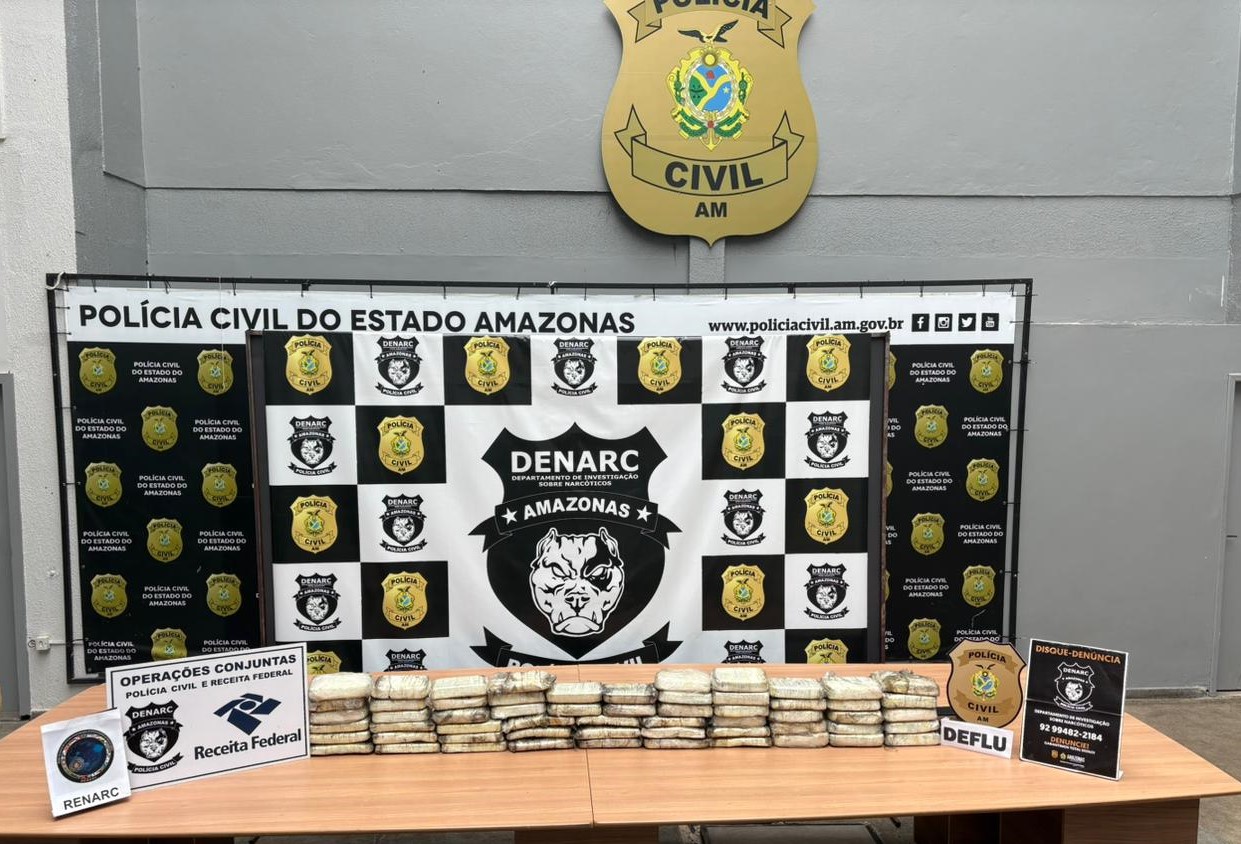 A Polícia Civil do Amazonas (PC-AM), por meio do Departamento de Investigação sobre Narcóticos (Denarc), com o apoio da Delegacia Fluvial (Deflu) e da Receita Federal, apreendeu 60 quilos de cocaína avaliados em R$ 4,5 milhões na quinta-feira (30/10). O entorpecente estava escondido nas rodas de uma caminhonete localizada em uma balsa nas proximidades do Porto da Ceasa, na zona sul de Manaus.