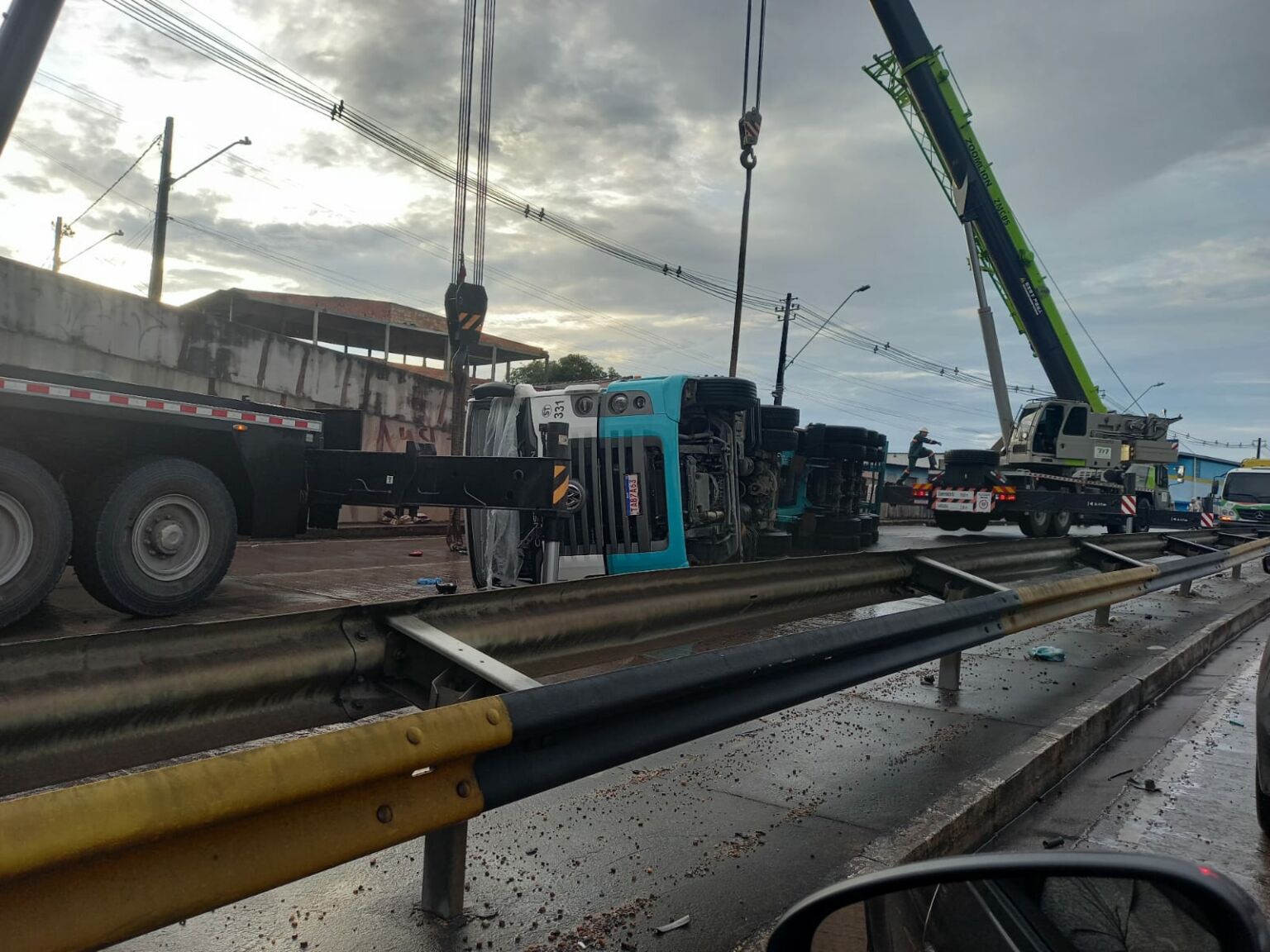 Carreta tomba na avenida das Torres e causa congestionamento em Manaus