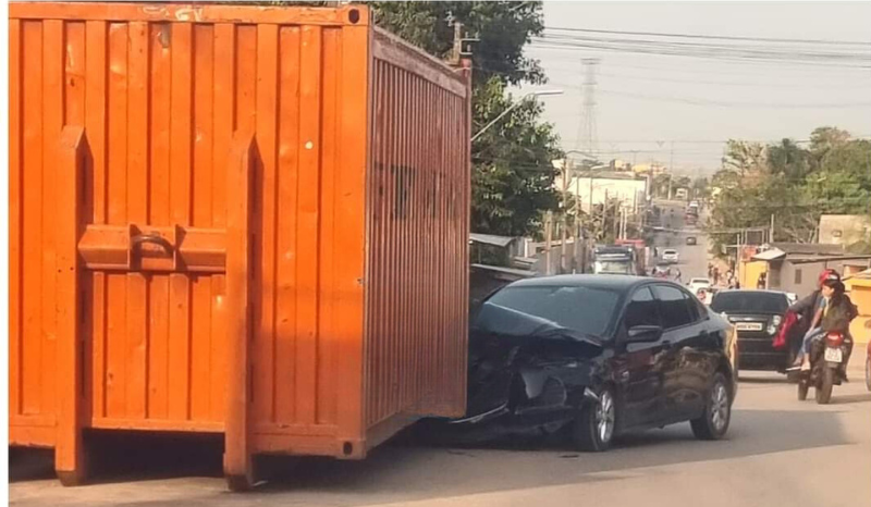 Manaus – Na tarde de terça-feira (3), um carro de passeio colidiu violentamente com um contêiner que estava irregularmente estacionado na avenida 7 de Maio, no bairro Santa Etelvina, zona norte de Manaus. O motorista tentou desviar de outro veículo e acabou atingindo o contêiner, causando danos significativos ao carro.