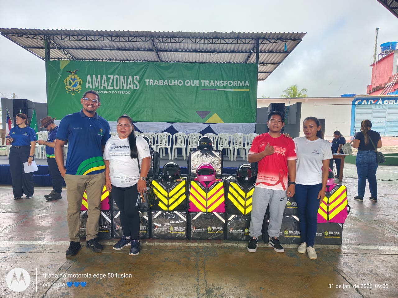 O Departamento Estadual de Trânsito do Amazonas (Detran-AM) entregou, no último sábado (31/01), 73 kits de segurança a motofretistas dos municípios de Santa Isabel do Rio Negro, a 630 quilômetros de Manaus, e Barcelos, a 399 quilômetros da capital. Ao todo, foram contemplados 33 profissionais em Santa Isabel e 40 em Barcelos, em uma ação do projeto Motociclista Legal que, pela primeira vez, beneficiou motofretistas dessas duas cidades.