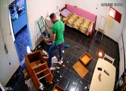O homem destruiu portas, vidros, espelhos, televisões, móveis, entre outros objetos. Ainda levou R$ 300 que achou no caixa do motel.