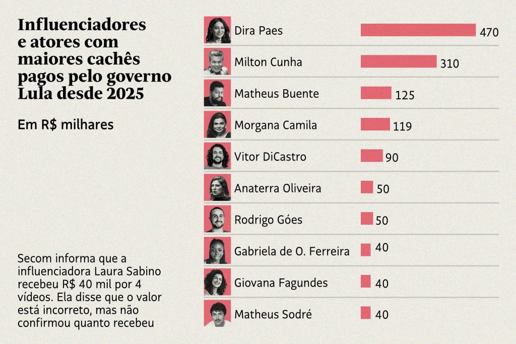 Os pagamentos foram realizados pela Secretaria de Comunicação Social (Secom), que passou a ampliar o uso de plataformas digitais como principal canal de divulgação das ações governamentais. Ao todo, pelo menos 55 influenciadores receberam valores que variam de R$ 1 mil a R$ 124,9 mil para participar de peças publicitárias ou divulgar programas oficiais.