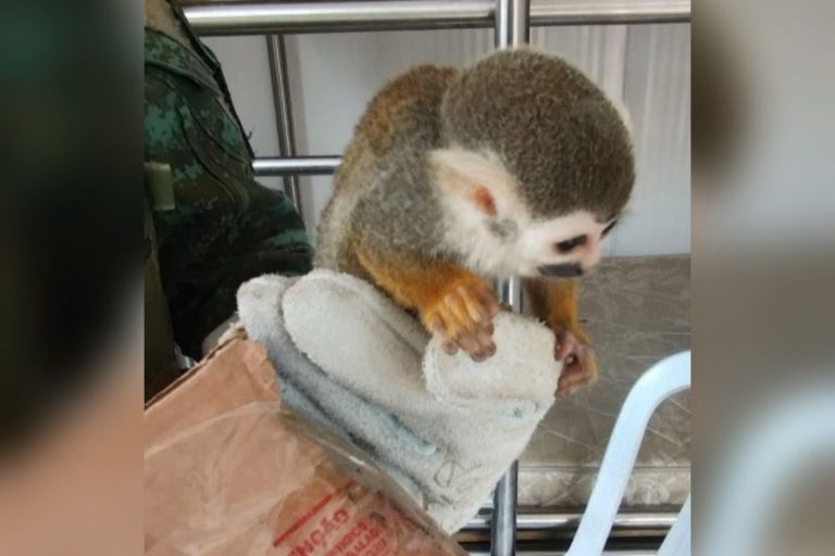 A equipe policial do Batalhão Ambiental realizava patrulhamento naquela rodovia, quando foi acionada pelos PMs do Batalhão de Trânsito, informando que haviam abordado um carro e que o condutor estava com um primata, da espécie macaco-de-cheiro (saimiri sciureus), sem autorização legal.