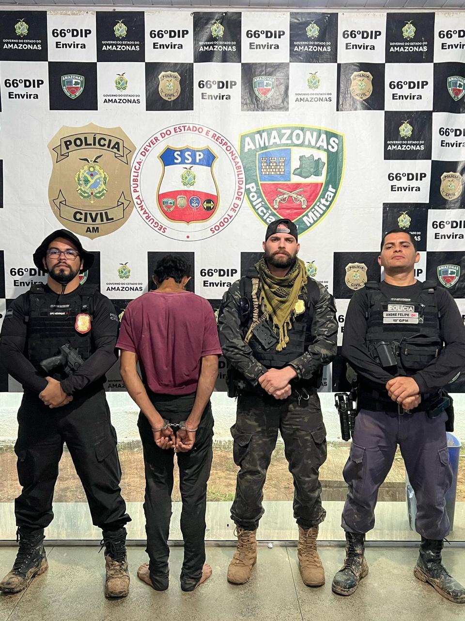 Um homem foi preso na última sexta-feira (30/05) na comunidade Santa Bárbara, zona rural de Envira (a 1.208 km de Manaus), acusado de tentativa de feminicídio, tentativa de homicídio e violência doméstica contra a esposa e os dois filhos, de 3 e 9 anos. A prisão foi efetuada em ação conjunta entre a Polícia Civil do Amazonas (PC-AM), por meio da 66ª Delegacia Interativa de Polícia (DIP), e a Polícia Militar do Amazonas (PMAM).