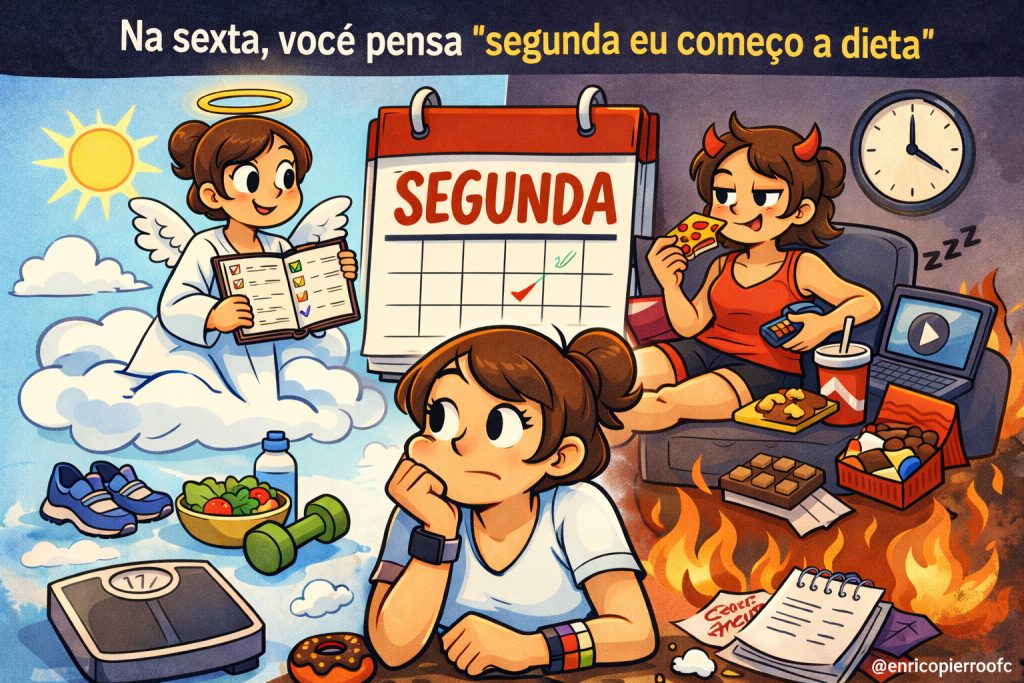 Existe uma frase que une a humanidade inteira, independente de classe social, signo, fé ou limite do cartão: “segunda eu começo.” É quase um patrimônio cultural. A gente fala com a mesma convicção de quem promete mudar de vida depois de tomar um choque de realidade — ou de glicose.