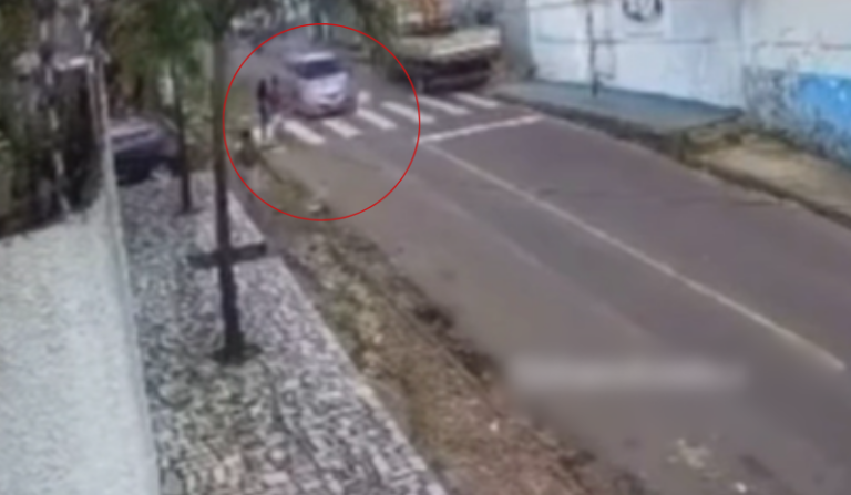 O momento do acidente foi registrado por câmeras de segurança e mostra a gravidade da colisão. As imagens revelam o idosa já caminhando sobre a faixa, acompanhada de outras pessoas que aguardavam para atravessar. Um carro em alta velocidade surge repentinamente e atinge a vítima em cheio.