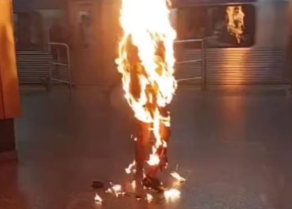 Imagens gravadas por celular mostram o homem em pé, envolto em chamas, na plataforma de embarque. Próximo a ele havia um foco de fogo embaixo de algum objeto, possivelmente um pertence pessoal. Um segurança do metrô prontamente correu até a vítima e usou extintores para conter as chamas. Ao todo, foram necessários cerca de 20 segundos de aplicação de espuma até que o fogo fosse completamente apagado.