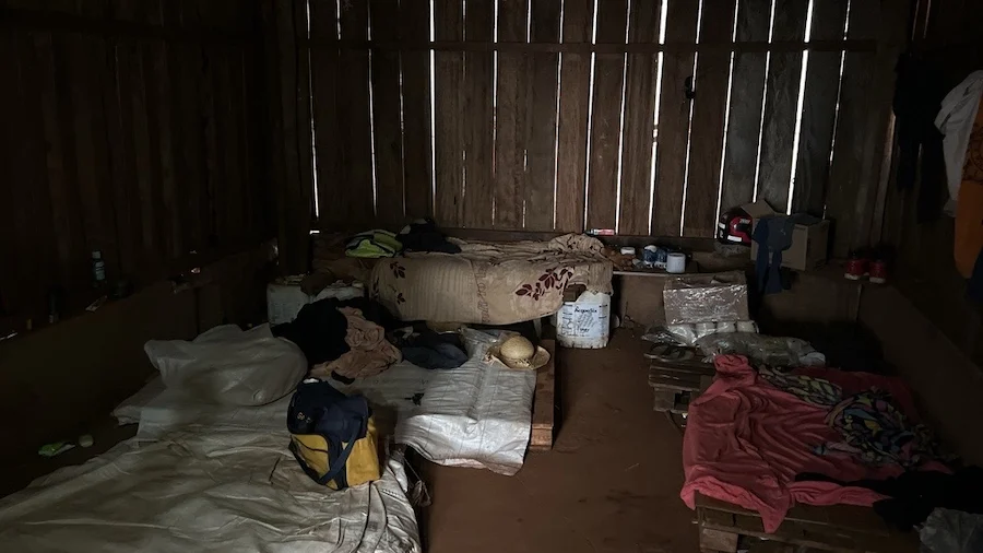 De acordo com a fiscalização, estavam alojados em um pequeno galpão, sem janelas, onde dormiam e cozinhavam. Não havia camas, nem colchões, substituídas por tábuas, papelão ou palha. Para se proteger do frio, usavam sacos de embalagens de produtos da fazenda e algumas cobertas. Tampouco havia instalação sanitária – faziam suas necessidades fisiológicas no mato. O empregador não fornecia equipamento de proteção individual.