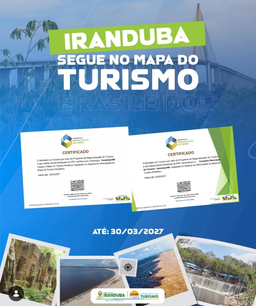 O município de Iranduba segue integrado ao Mapa do Turismo Brasileiro, instrumento que reconhece cidades com potencial ou relevância para o desenvolvimento do setor turístico no país. A permanência no mapa reforça o papel estratégico do município na valorização das atividades turísticas e no estímulo à economia local.
