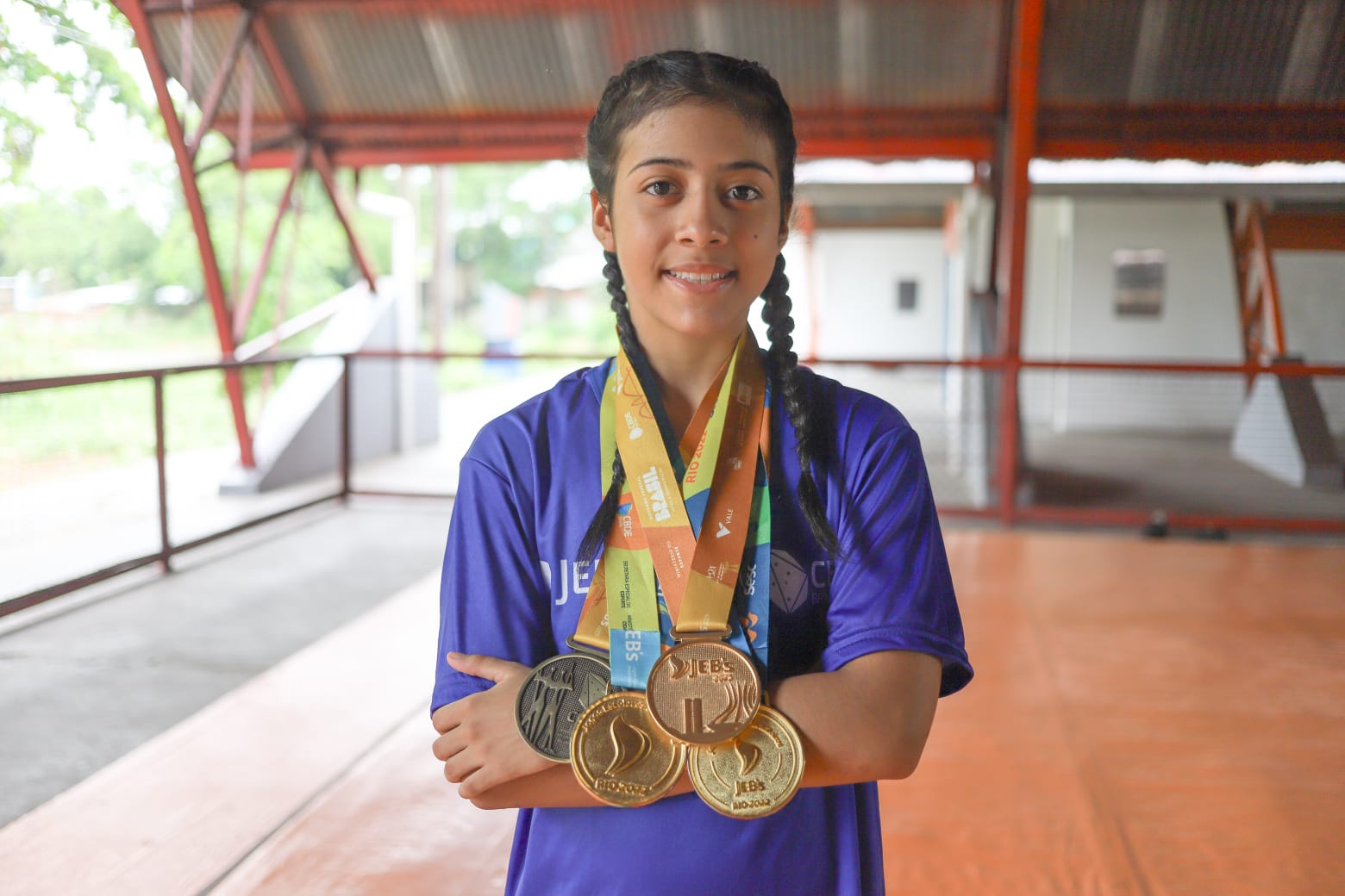 Os atletas Jeniffer Queiroz e Naian Lima conquistaram medalhas de ouro e bronze, respectivamente, para o Amazonas nos Jogos Escolares Brasileiros (Jeb’s) 2023, que se encerra nesta quarta-feira (08/11). Os jovens contam com o apoio do Governo do Amazonas. Naian faz parte do Projeto Formando Campeões e Jeniffer recebe patrocínio do Bolsa Esporte Estadual.