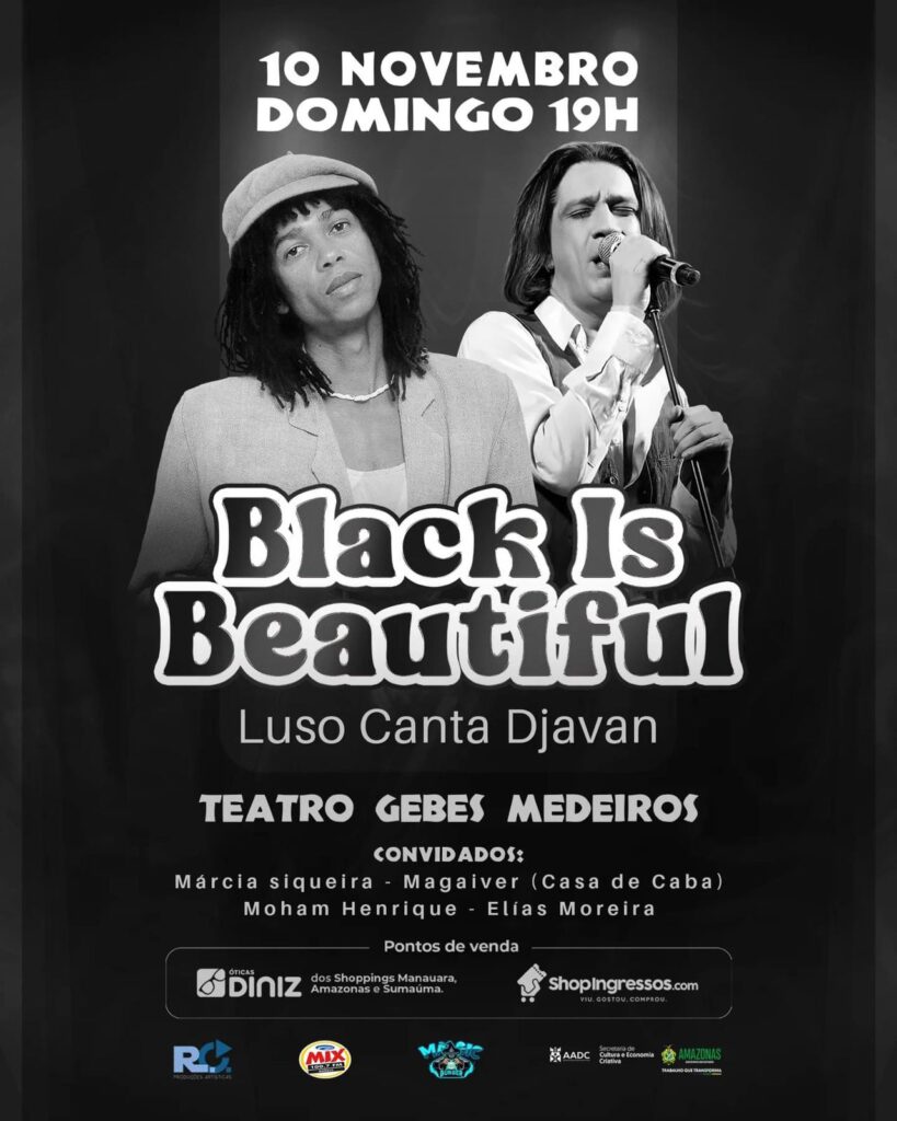 Dessa vez no Show, “Black Is Beautiful” Luso Canta Djavan, o ator, cantor e compositor amazonense selecionou um time pesado de convidados especiais para abrilhantar ainda mais o espetáculo: a voz da Amazônia Márcia Siqueira, o vocalista Magaiver da banda “Casa de Caba”, o ex participante do “The Voice Brasil” Elias Moreira, e toda a brasilidade de Moham Henrique, acompanhados pelo violonista Wanderlan Paulino e a percussão de Fafá.