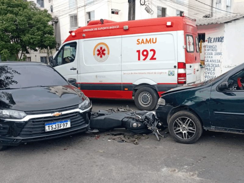 Motociclista fica gravemente ferido em acidente com dois carros na zona norte de Manaus