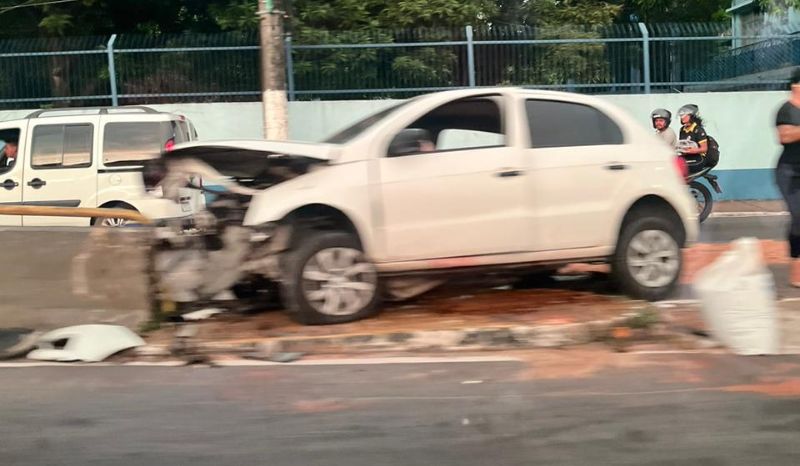 Motorista dorme ao volante e bate carro em mureta na avenida Mário Ypiranga