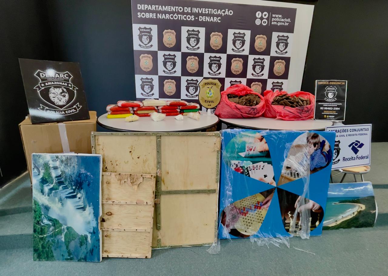 A Polícia Civil do Amazonas (PC-AM), por meio do Departamento de Investigação sobre Narcóticos (Denarc), apresentou em coletiva de imprensa nesta segunda-feira (20/10) a apreensão de 16 quilos de cocaína comum e 34 quilos de cocaína negra em uma mansão de luxo no bairro Ponta Negra, zona oeste de Manaus. O material apreendido representa um prejuízo estimado em R$ 19,5 milhões para o crime organizado.