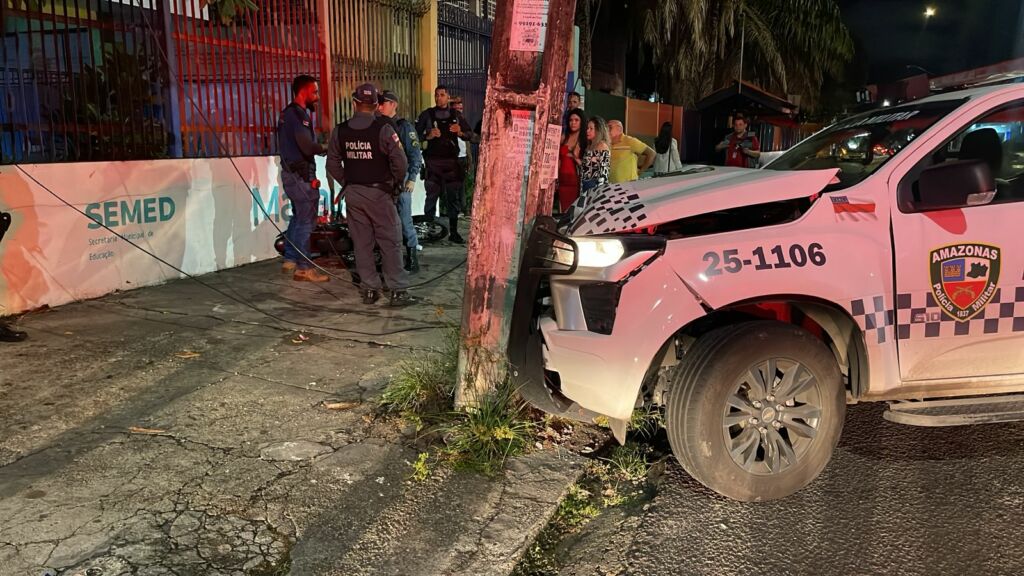 Manaus – Uma perseguição policial terminou em acidente na noite deste domingo (5), quando uma viatura da Polícia Militar do Amazonas (PMAM) colidiu contra um poste de energia na rua Professor Abílio Alencar, em frente à Escola Graziella Ribeiro, zona Leste de Manaus. O impacto mobilizou equipes do Serviço de Atendimento Móvel de Urgência (Samu) e da perícia criminal.