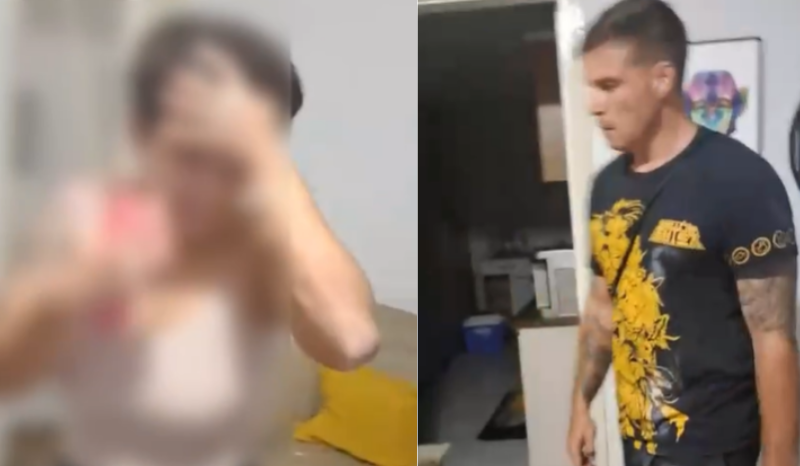 As imagens mostram que o casal estava na presença de uma outra mulher que é a responsável por filmar a cena. Diego aparece gritando com a mulher e exigindo que ele lhe entregue o celular dela.